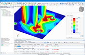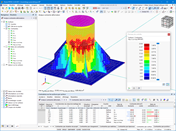 L’illustration montre la distribution des contraintes dans une surface composée d’un matériau non linéaire. On observe des zones avec différentes intensités de contrainte, dues aux propriétés des matériaux et à la distribution des charges. L’analyse prend en compte la réaction non linéaire du matériau aux influences extérieures. Ces informations sont cruciales pour l'optimisation des structures porteuses et la prévention des ruptures de matériaux.