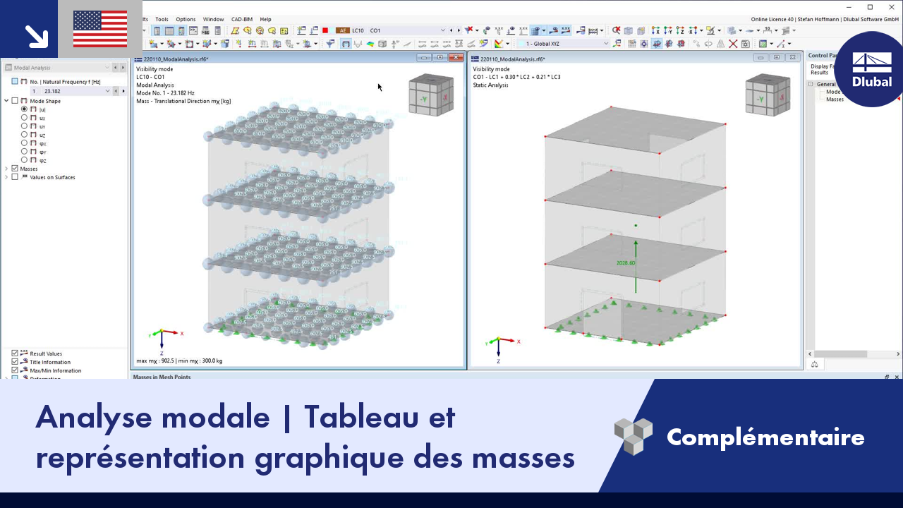 Analyse modale - Affichage tabulaire et graphique des masses Le logiciel d’analyse aux éléments finis