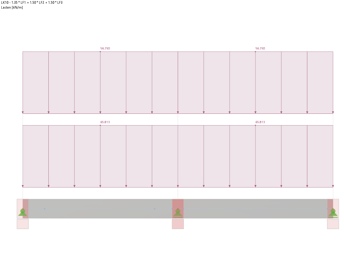 Charges – Combinaison de charges CC10 avec des charges égales et concentrées