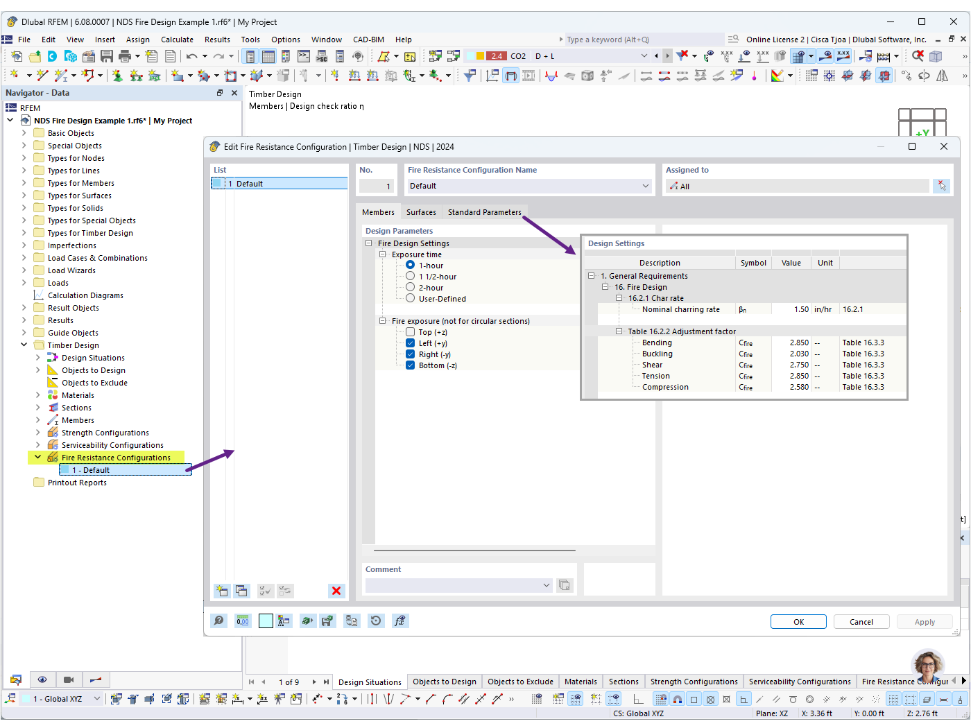 Vérification de la résistance au feu des barres en bois dans RFEM 6