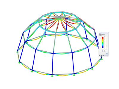 En plus de l'évaluation des résultats dans les fenêtres, il est possible de représenter les contraintes et les rapports de contraintes graphiquement dans la fenêtre de travail RFEM/RSTAB. Les couleurs et les valeurs affectées dans le panneau peuvent être ajustées de manière appropriée.