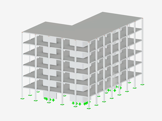 Interface RFEM 6 avec modèle d’un bâtiment en béton