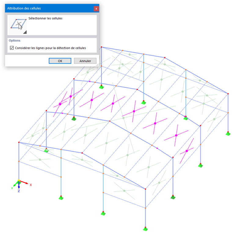 De plus, les "cellules" permettent, dans les assistants de modélisation et de chargement, la création d'objets de modèle et l'application de charges.