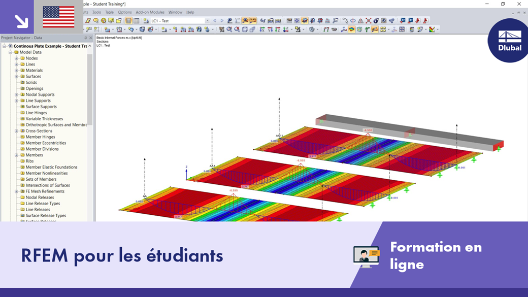 Les formations en ligne nécessitent une connexion Internet fiable.Chaque participant aura accès aux modèles, à la vidéo et au matériel de formation sur notre site Web une fois la session terminée. Un lien vers le site Web de Dlubal Software sera envoyé par e-mail après la session. Les participants pourront ainsi s'exercer à leur rythme sur les exemples traités et les approfondir.
