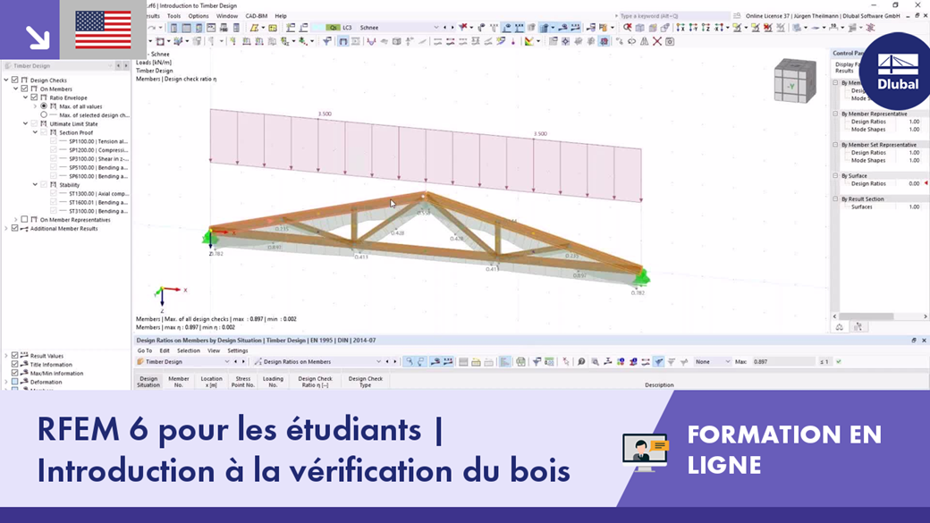 Formation en ligne gratuite sur les fonctions de base du logiciel de calcul de structure aux éléments finis RFEM 6 | Introduction à la vérification du bois pour les étudiants