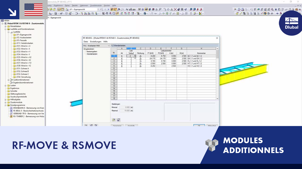Dlubal RFEM 5 et RSTAB 8 - Modules additionnels : RF-MOVE & RSMOVE
