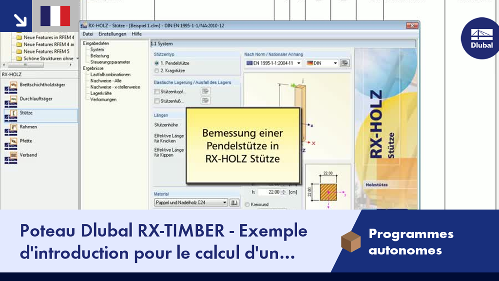 Poteau Dlubal RX-TIMBER - Exemple d'introduction pour le calcul d'un poteau en bois