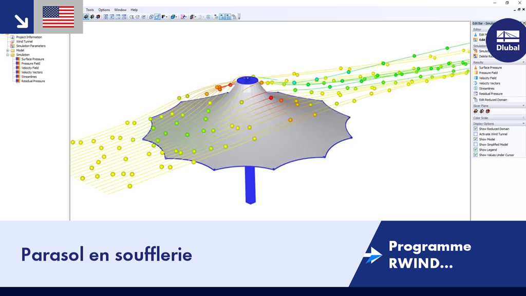 Programme RWIND Simulation | Parasol en soufflerie