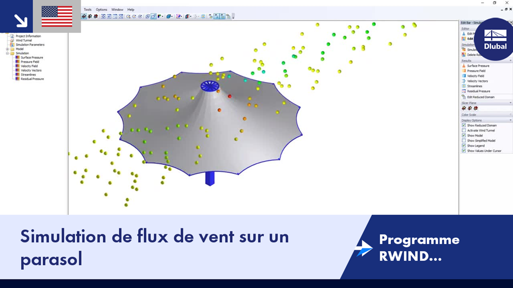 Programme RWIND Simulation | Simulation de flux de vent sur un parasol