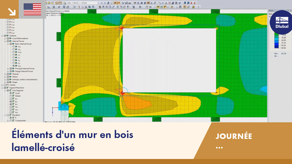 Dans cette troisième vidéo sur la journée d'information Dlubal en ligne, Gerhard Rehm explique les étapes du dimensionnement des éléments d'un mur en bois lamellé-croisé avec RF-LAMINATE dans RFEM.