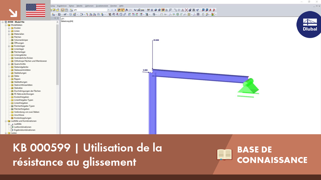 Selon la clause 6.2.2 (6) de l'EN 1993-1-8: 2010-12, vous pouvez appliquer le frottement à l'aide du coefficient de frottement pour calculer la capacité de cisaillement. S'il existe une force de compression agissante, la résistance au glissement calculée peut être définie sur la force horizontale appliquée. L'option appropriée permet de prendre en compte cette influence dans RF-/JOINTS Steel - Column Base.