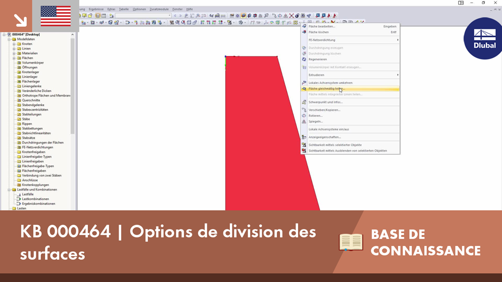 Si vous souhaitez diviser une surface limitée par quatre côtés en plusieurs surfaces, la méthode la plus simple consiste à utiliser la fonction « Séparer la surface ».
