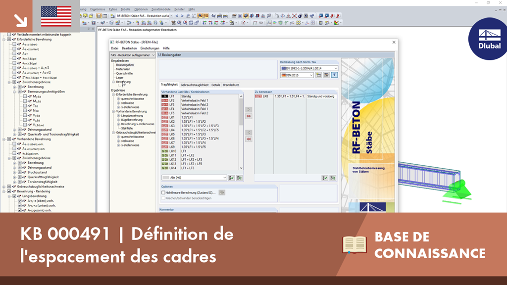Pour couvrir l'armature transversale requise, RF-CONCRETE Members et CONCRETE déterminent l'armature transversale la plus économique en tant que proposition d'armature selon le diamètre de l'étrier prédéfini. Les résultats d'un tel processus déterminant sont souvent des distances irrégulières entre les étriers qui ne peuvent pas être intégrées sur les chantiers. En précisant les distances possibles de l'armature de l'étrier, vous pouvez définir les distances souhaitées (par exemple, par pas de 5 cm). La proposition d'armature pour l'armature des étriers est générée à partir des diamètres et des espacements des étriers définis et peut ainsi être utilisée pour effectuer les travaux d'armatures sur le chantier.