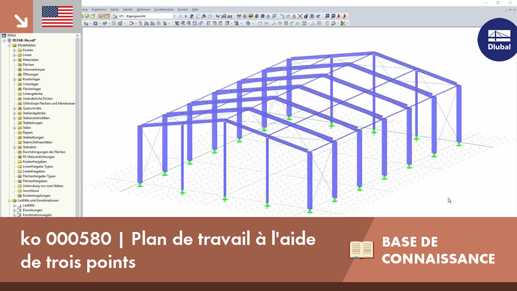 Dans RFEM 5 et RSTAB 8, vous pouvez maintenant créer un plan de travail en sélectionnant simplement trois points. Il n'est plus nécessaire de créer un système de coordonnées défini par l'utilisateur.