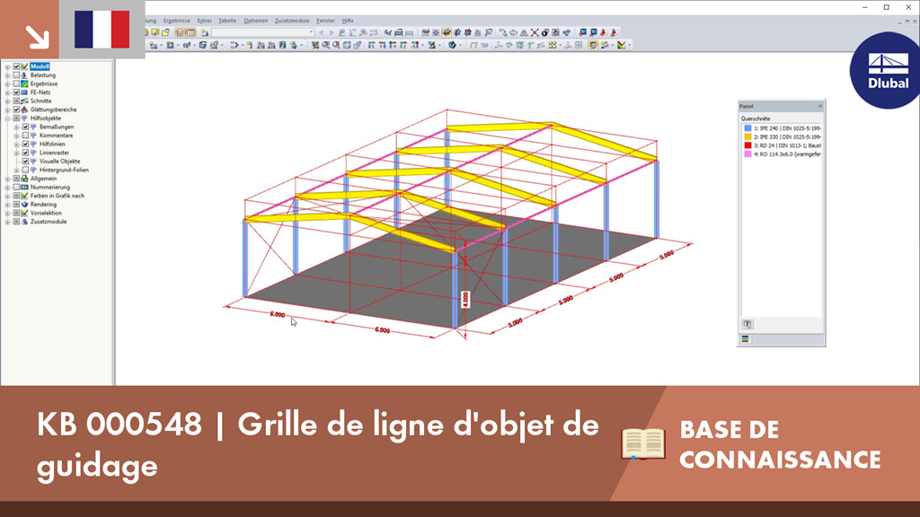 L'option «Grille de ligne» est disponible dans «Navigateur de projet - Données» sous «Objets repères» pour modifier rapidement la géométrie de la structure.