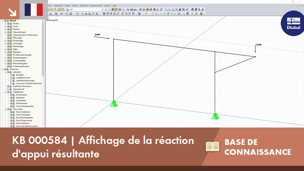 Dans RFEM 5 et RSTAB 8, vous pouvez afficher la force d'appui résultante en fonction du centre de gravité du modèle. Il peut être utilisé, par exemple, pour vérifier le modèle et charger des données.