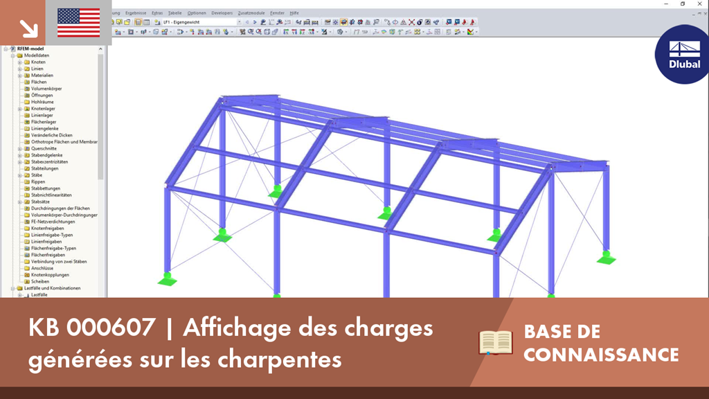 Dans RFEM 5 et RSTAB 8, vous pouvez générer des charges surfaciques pour le vent et la neige à l'aide du générateur de charge intégré. Sur les charpentes, ces charges surfaciques sont également affichés comme charge de surface dans l'environnement graphique par défaut.
