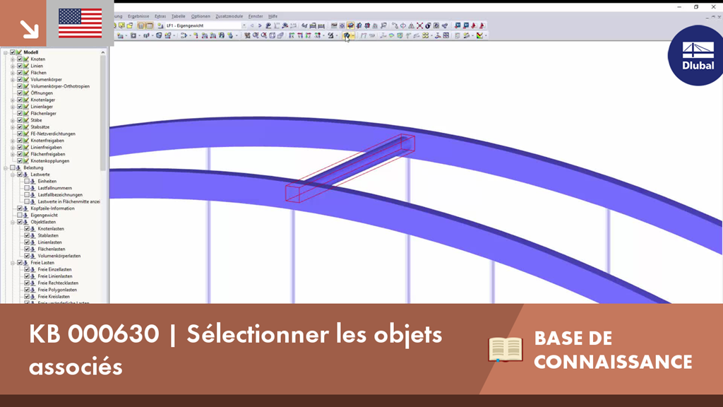 Il est parfois nécessaire d'ajouter à la sélection des objets associés, tels que des nœuds et des lignes d'une surface, afin de modifier des parties du modèle.