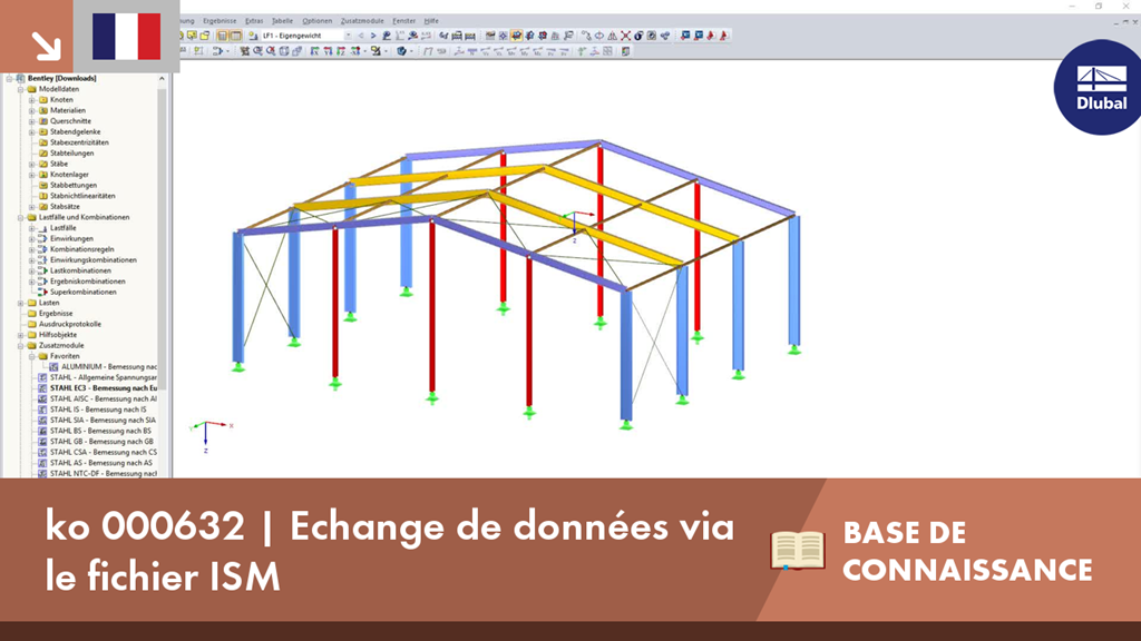 Le fichier ISM (ISM = Integrated Structural Modeling) dans RFEM et RSTAB offre une possibilité très intéressante pour l'échange des données. Si vous exportez un modèle avec ce format de données, vous pouvez le visualiser et l'analyser avec le visualisateur libre ISM de Bentley.