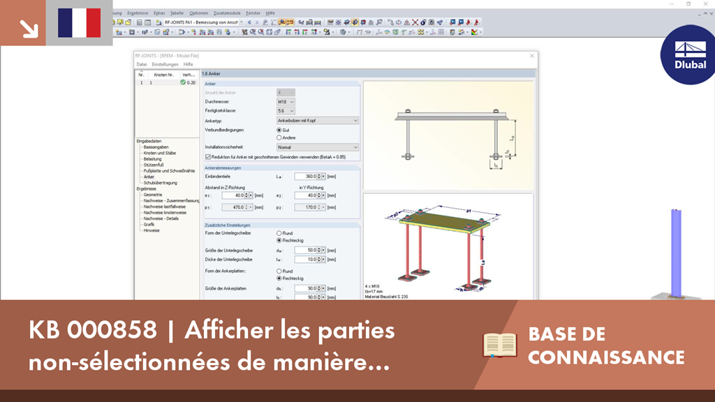 Les modules RF-/JOINTS disposent d'une fenêtre graphique qui affiche tous les composants de l'assemblage. Vous pouvez y utiliser les fonctions de la souris connues de RFEM et RSTAB pour zoomer, déplacer ou faire pivoter la vue.