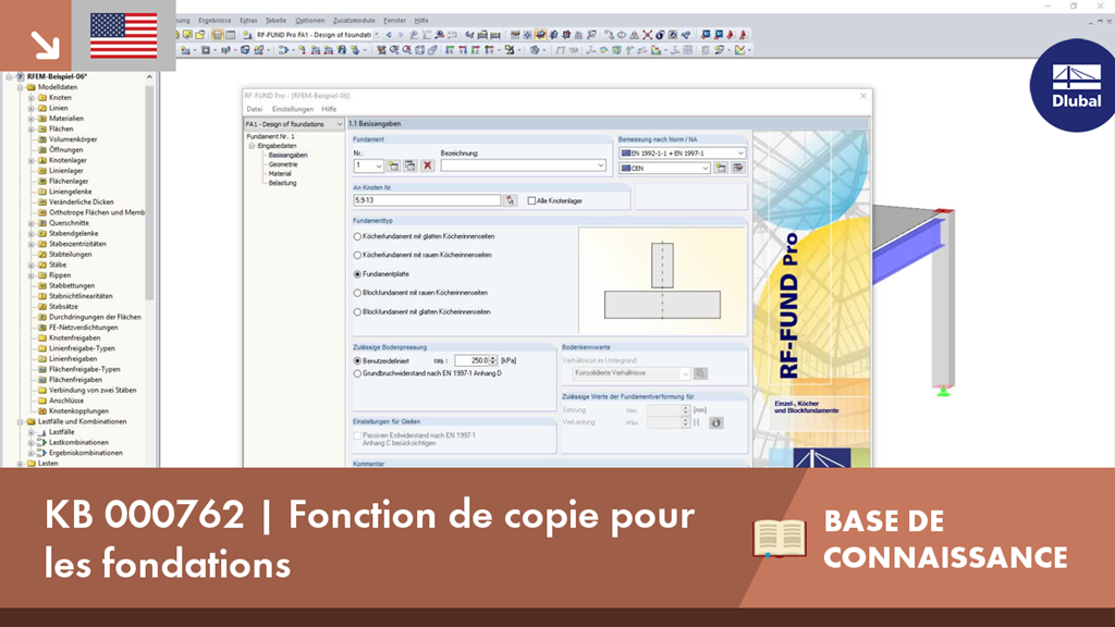 Une fonction de copie est disponible pour faciliter la définition de plusieurs fondations dans RF-/FOUNDATION Pro. Ainsi, il est possible de copier toutes les données d'entrée d'une fondation déjà définie dans une nouvelle fondation. Après la copie, vous pouvez modifier rapidement les données d'entrée de la nouvelle fondation.