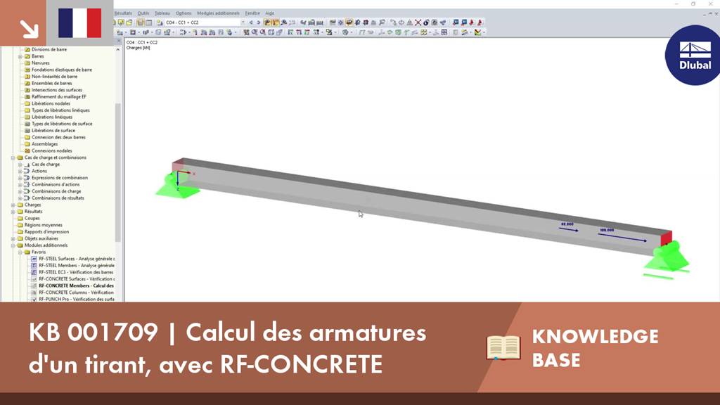 KB 001709 | Calcul des armatures d'un tirant, avec RF-CONCRETE