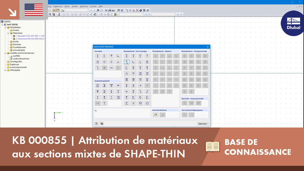 KB 000855 | Attribution de matériaux aux sections mixtes de SHAPE-THIN
