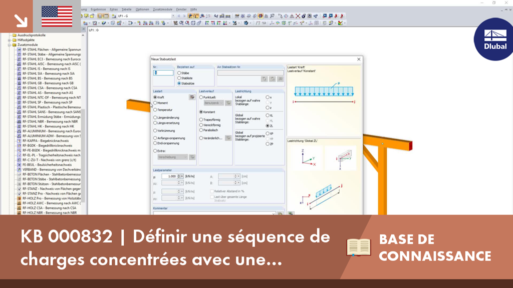 Le programme RFEM ou RSTAB fournit une solution pour cette tâche en proposant une disposition des charges concentrées définie par l'utilisateur. Cette fonction de charge permet de définir une séquence de charges ponctuelles librement définie avec toutes les distances et valeurs de force dans un même ensemble de données.