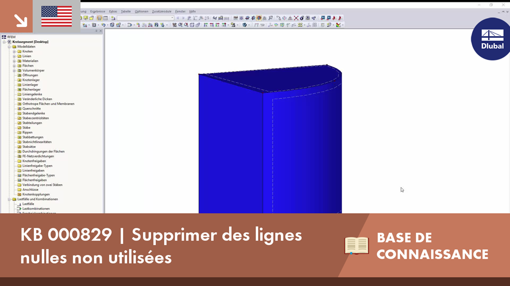 Dans le logiciel RFEM, vous avez la possibilité de supprimer les lignes nulles non utilisées. Cette fonction se trouve sous « Outils » → « Contrôle du modèle » → « Supprimer les lignes nulles non-utilisées ».