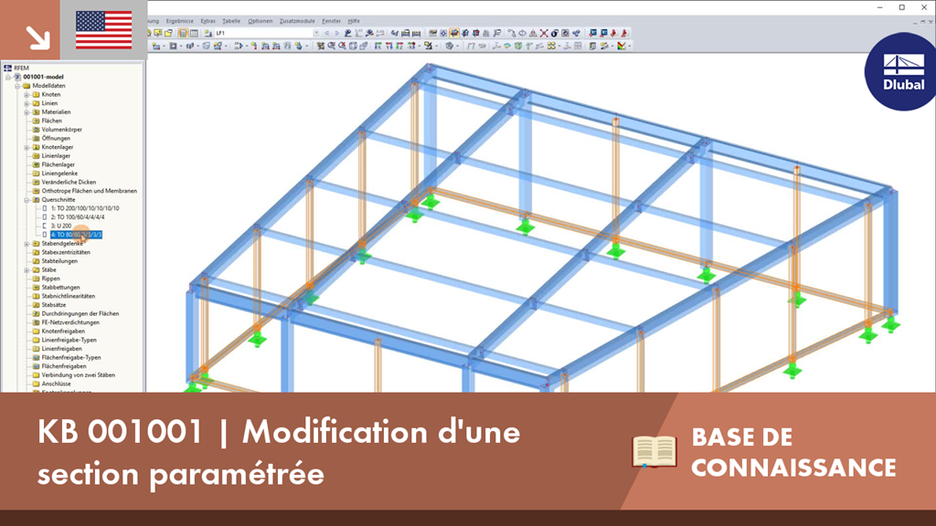 Si vous définissez une section paramétrique dans la bibliothèque en vous basant sur ses dimensions, les propriétés géométriques seront codées dans la description de la section, par exemple «TO 200/100/10/10/10». Pour modifier les dimensions, il est possible d'ajuster les paramètres directement dans la description de la section.