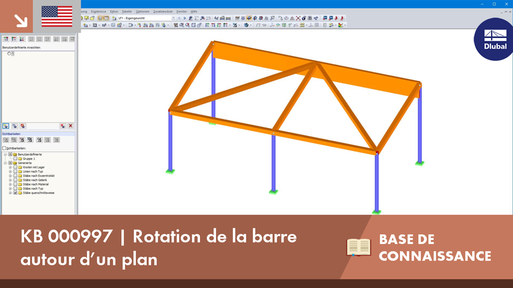 Si des barres alignées dans l'espace se rencontrent dans un nœud, les axes locaux x ou y des barres ne se trouvent pas dans un seul plan car les axes locaux z sont alignés dans le plan de gravité.