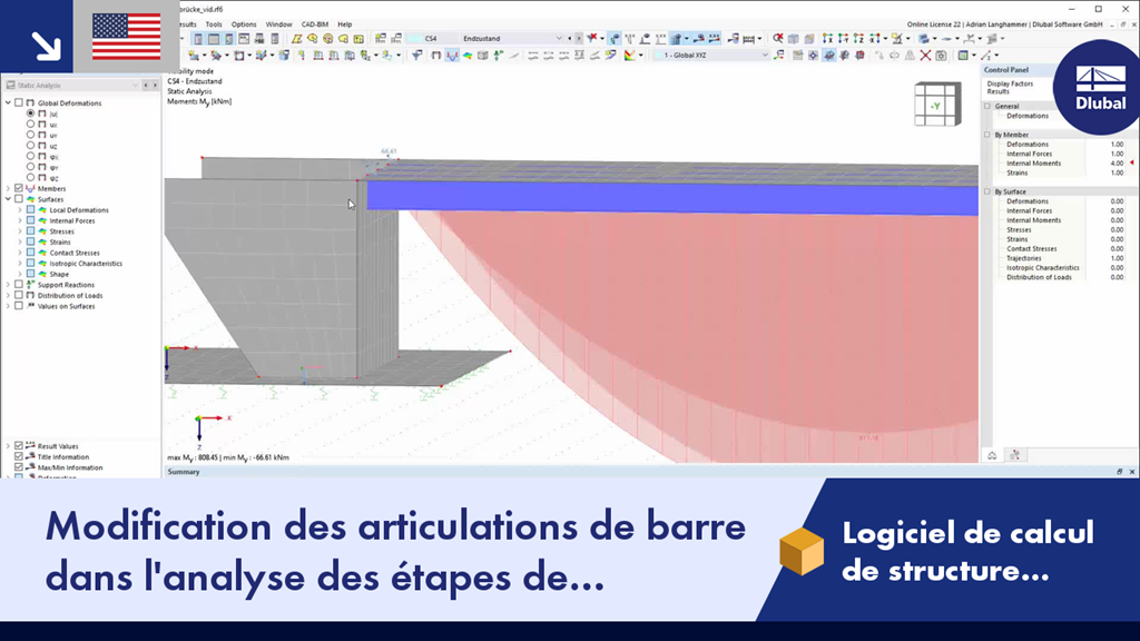Cette vidéo montre la modification des articulations de barre dans l'analyse des étapes de construction. Une telle situation se produit, par exemple, si vous bétonnez sur une poutre en acier.
