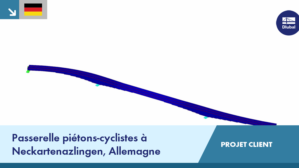 À Neckartenzlingen, en Allemagne, une passerelle piétons-cyclistes de 3 m de large et de 96,30 m de long enjambe le Neckar, un affluent du Rhin. En forme de S, elle est cependant dotée d'une partie centrale droite.
