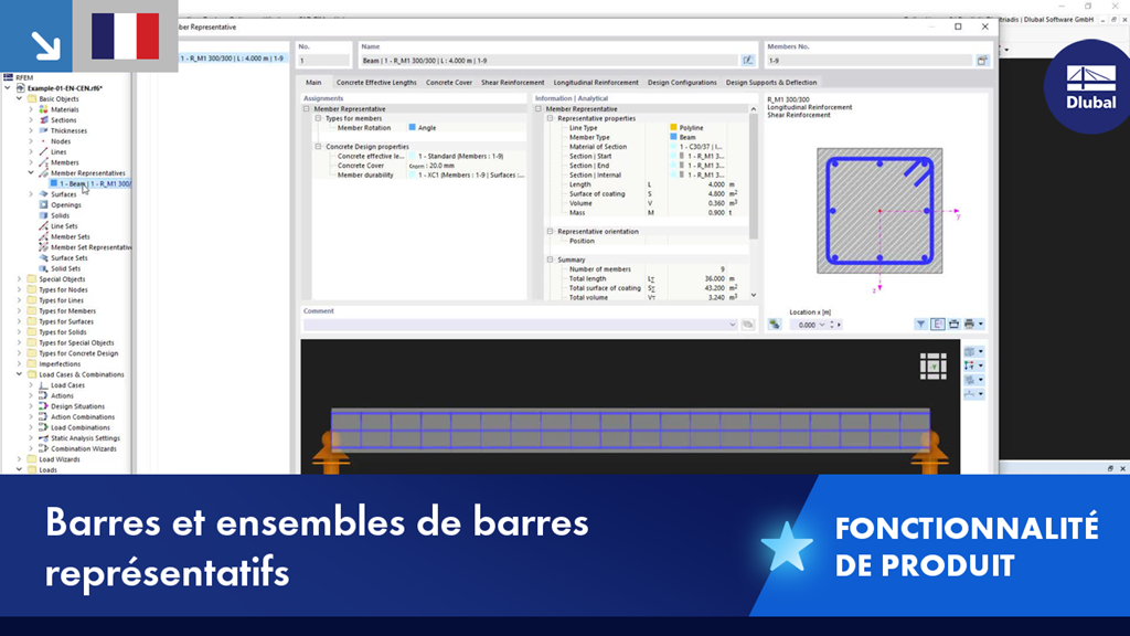 Pour les barres et ensembles de barres présentant des propriétés identiques, vous avez la possibilité d'activer des éléments représentatifs pour l'organisation, la vérification et la documentation du modèle.