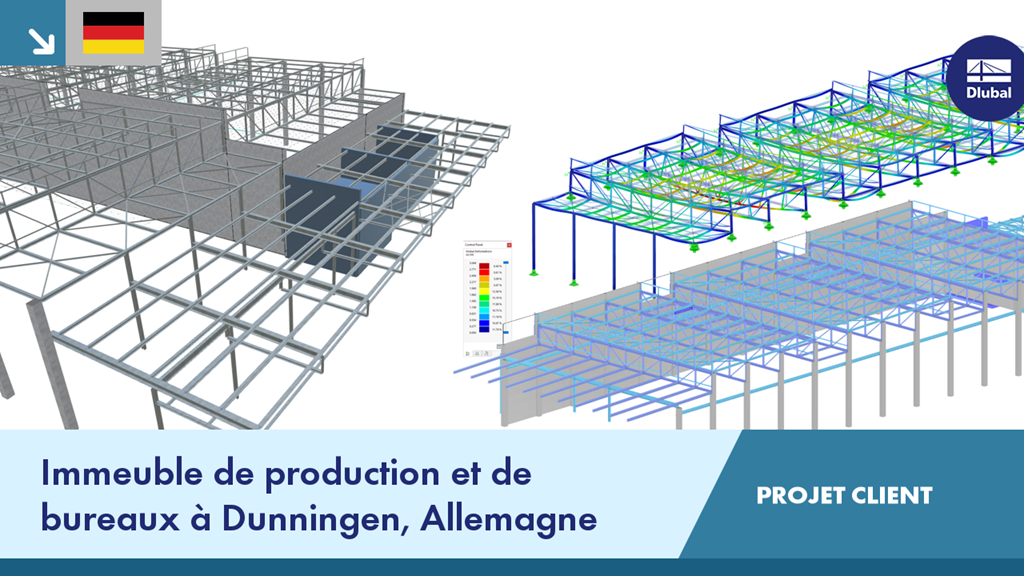 Le projet client a été converti dans RFEM 6 pour la vidéo de présentation. Dans la vidéo, vous pouvez voir le travail avec le modèle dans le programme ainsi que les résultats de déformation réels.