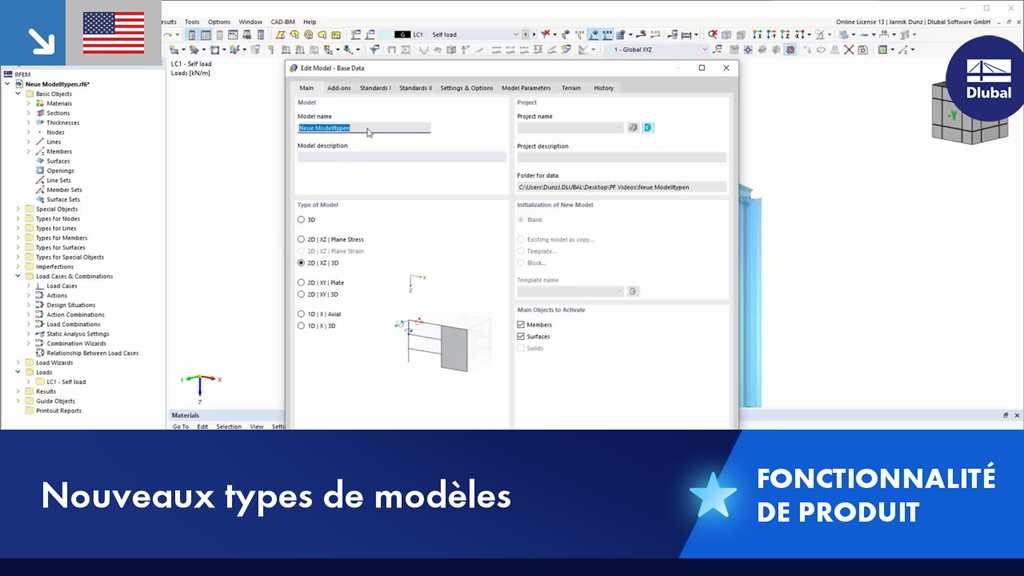 Trois nouveaux types de modèle ont été ajoutés dans RFEM 6 :