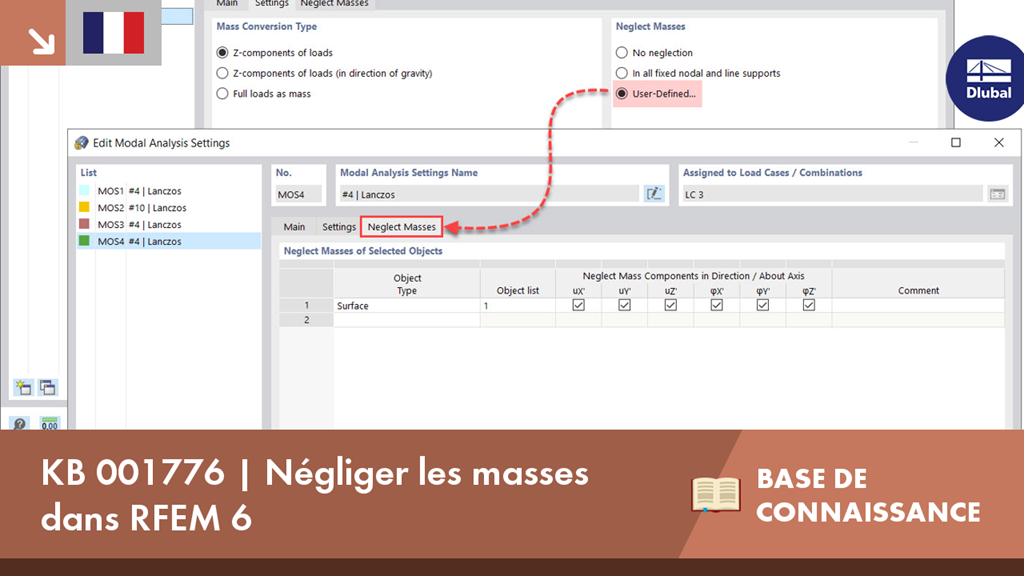Cette vidéo présente les options permettant de négliger les masses pour l'analyse modale dans RFEM 6.