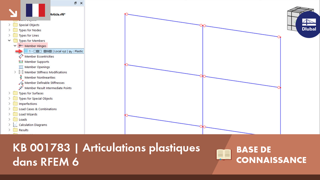 Les articulations plastiques sont impératives pour l'analyse pushover (POA) en tant que méthode statique non linéaire pour l'analyse sismique des structures. Dans RFEM 6, les articulations plastiques peuvent être définies comme des articulations de barre. Dans cette vidéo, nous vous expliquons comment définir des articulations plastiques avec des propriétés bilinéaires.