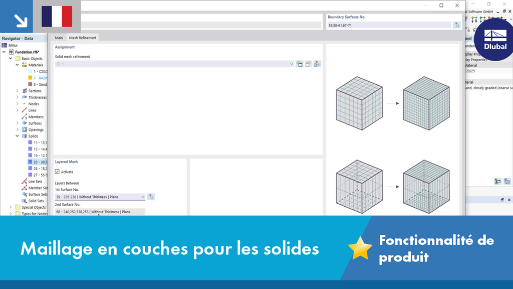Souhaitez-vous mailler des solides ? Vous avez ici la possibilité de disposer un maillage EF en couches. Cette option permet de diviser avec précision un solide à l'aide d'éléments finis entre deux surfaces parallèles. Essayez dès maintenant !