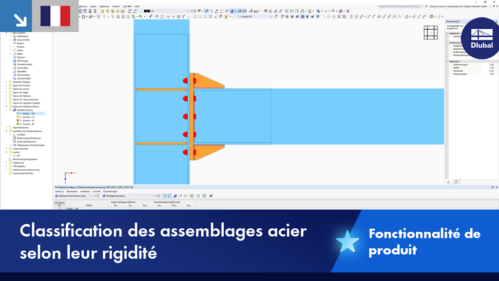 Le module complémentaire Assemblages acier vous permet de classer les rigidités des assemblages.