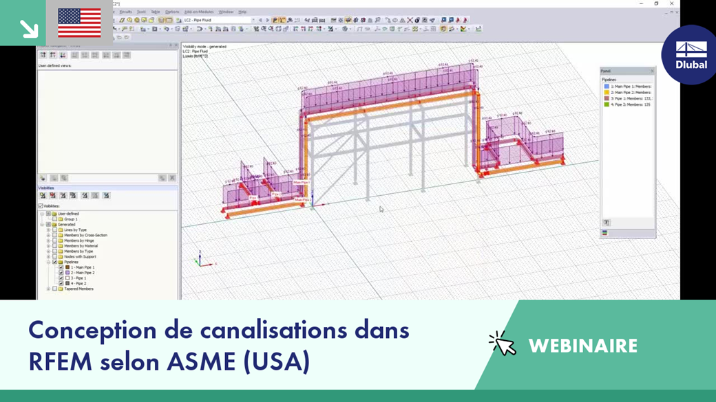 - Modélisation d'un système de canalisations et d'une structure porteuse dans RFEM avec l'extension de module de RF-PIPING