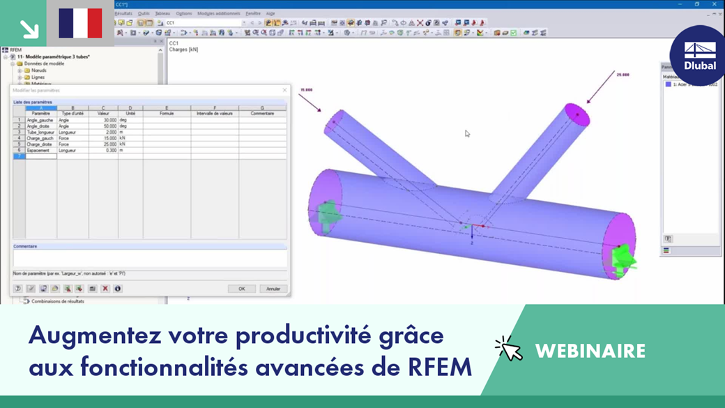 Ce webinaire présente des fonctionnalités de RFEM qui vous aideront à améliorer votre productivité et votre efficacité au quotidien. Il est possible de poser des questions au formateur.