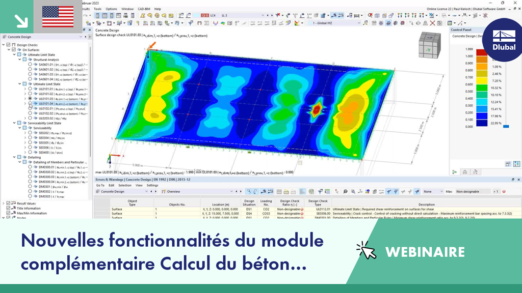 Saisie du modèle pour la vérification dans le module complémentaire Vérification du béton, avec présentation des nouvelles fonctionnalités les plus importantes du module au cours des derniers mois de développement