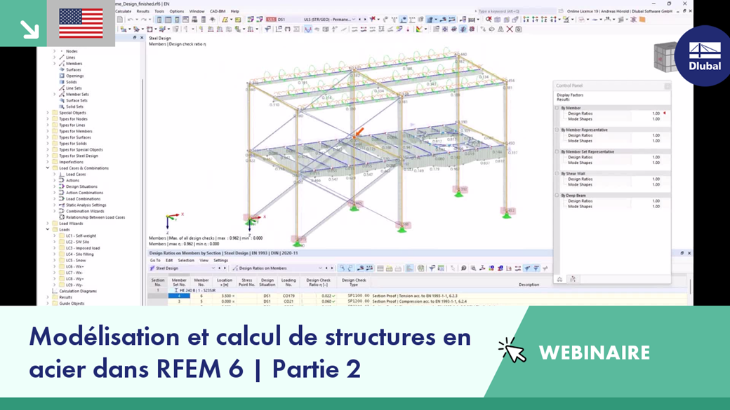 Vérification des composants en acier (avec considération du panneau de cisaillement et du maintien en rotation)