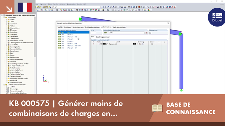 Cette sélection peut être réduite, par exemple, en utilisant les participations de cas de charge pour obtenir des résultats d'effort normal extrême à partir d'une combinaison de résultats linéaire. Pour ce faire, les résultats des cas de charge disponibles doivent être superposés linéairement en chaque point du modèle selon la norme de superposition sélectionnée et les participations aux cas de charge doivent être utilisées pour obtenir des résultats de combinaison extrêmes afin de réduire le nombre de combinaisons de charges analysées.