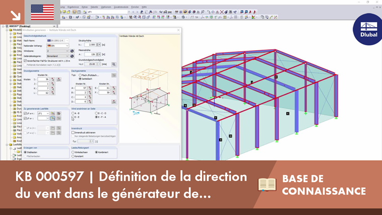 Un générateur de charges de vent avec l'option « Définir le vent sur le côté » a été ajouté dans RFEM 5 et RSTAB 8. Après avoir défini la géométrie de base et la géométrie de la toiture en sélectionnant les nœuds de coin, la sélection des directions du vent est activée. Ainsi, vous avez la possibilité de définir rapidement la direction dans laquelle le vent heurte la structure, directement via la fenêtre de saisie.