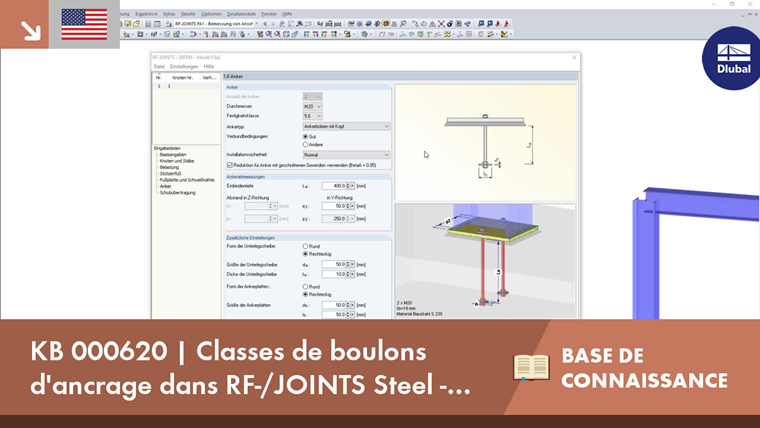 Ce règlement est implémenté dans RF-/JOINTS Steel - Column Base. La sélection des classes de boulons dans la fenêtre 1.6 Ancrage est ajustée de manière dynamique en fonction de l'Annexe Nationale choisie.