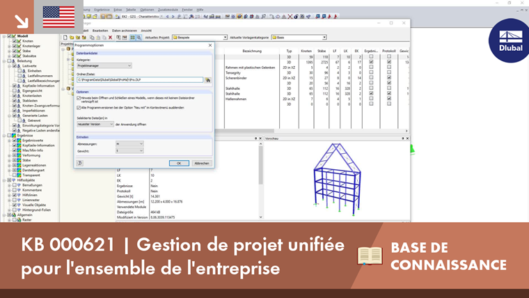 Le gestionnaire de projet dans RFEM 5 et RSTAB 8 utilise un seul fichier pour la gestion de projet. Vous avez la possibilité de stocker facilement ce fichier dans un chemin d'accès réseau. Les données du projet doivent également être stockées sur un serveur. Ainsi, chaque utilisateur a la même structure de projet lors de l'ouverture du gestionnaire de projet et peut clairement voir les dernières modifications.
