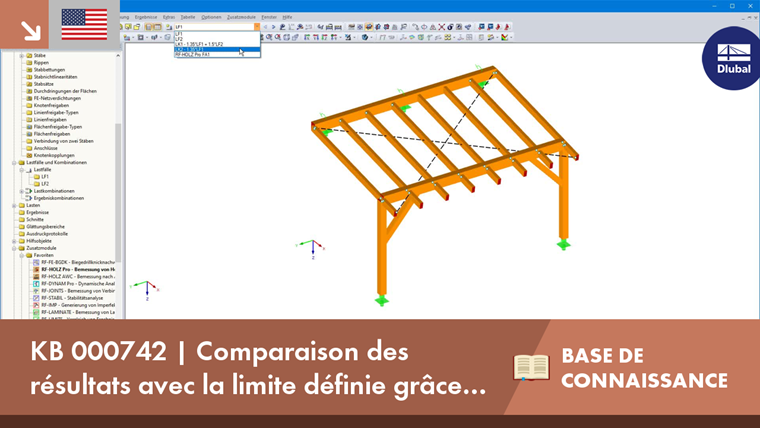 Le module compare ensuite les efforts internes existants ou les dimensions de section avec les efforts admissibles. Pour exécuter cette opération , le calcul peut être effectué selon l'EN 1995-1-1 (norme pour le calcul de structures en bois) avec les Annexes Nationales correspondantes. Si aucune norme n'est sélectionnée, la considération d'un facteur de sécurité partiel peut éventuellement être activée.