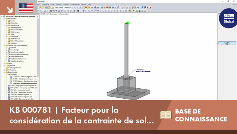 Selon la norme DIN EN 1992-1-1, la somme des pressions du sol dans le cône de poinçonnement peut être estimée comme ayant un effet de déchargement de 100% si le périmètre critique dans le calcul du cisaillement par poinçonnement de la dalle de fondation est déterminé de manière itérative. Si, pour simplifier le calcul, le périmètre de contrôle constant est considérer à une distance de 1,0 d, 50% de la somme des pressions de sol dans le périmètre de contrôle constant peut être estimée comme ayant un effet de déchargement.